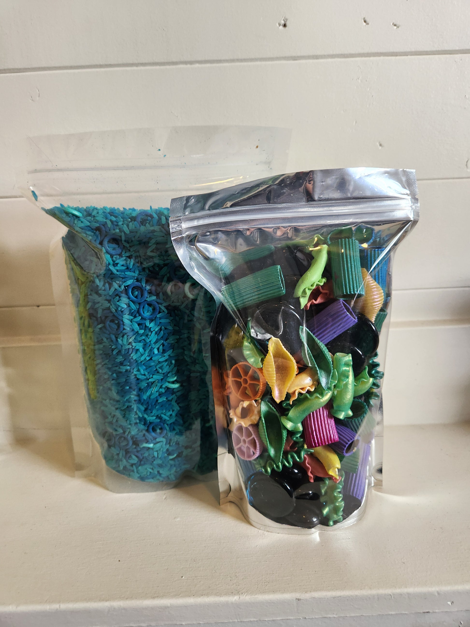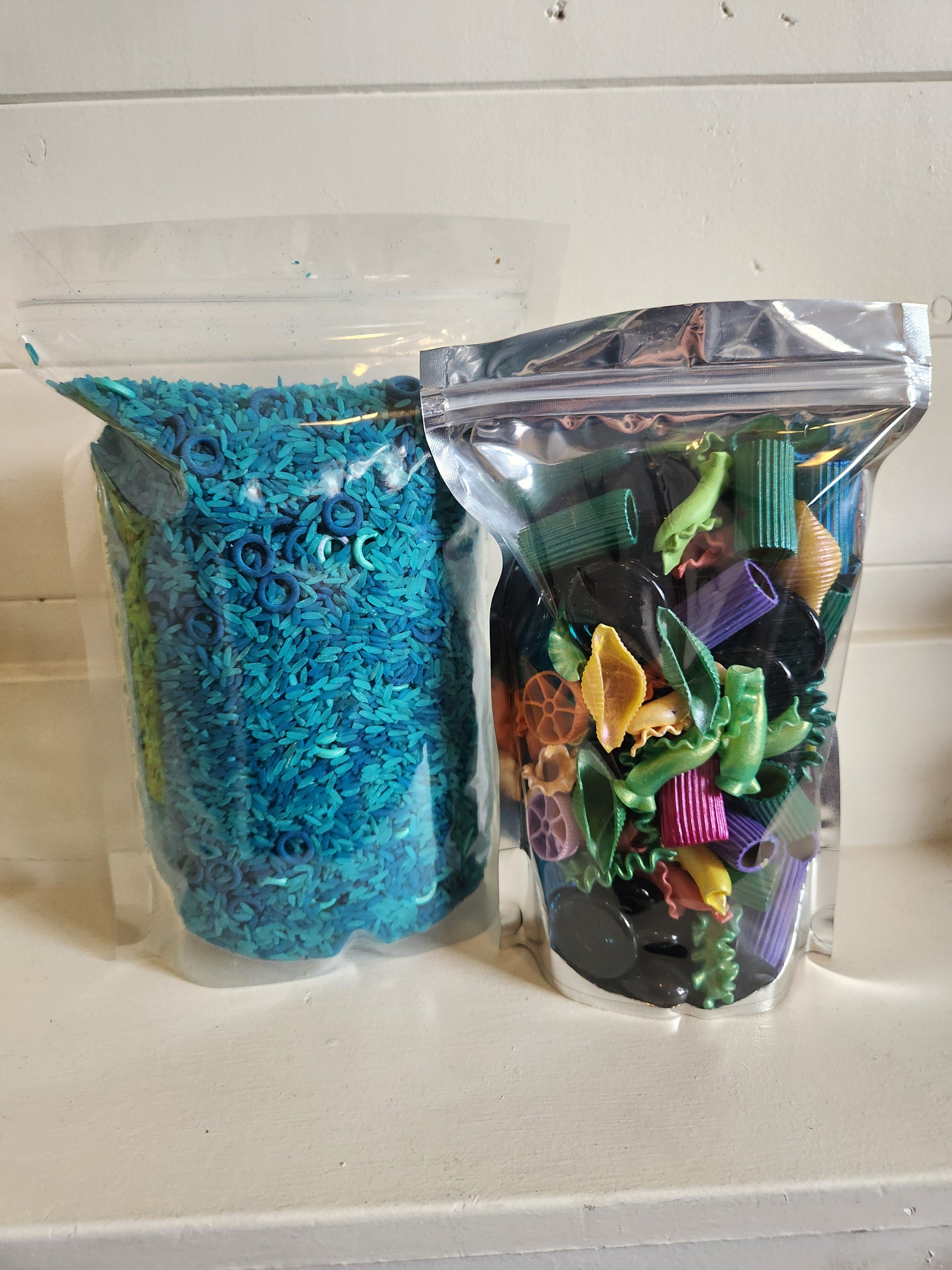 ๐น Dyed rice and pasta in calming ocean blues and sandy neutrals